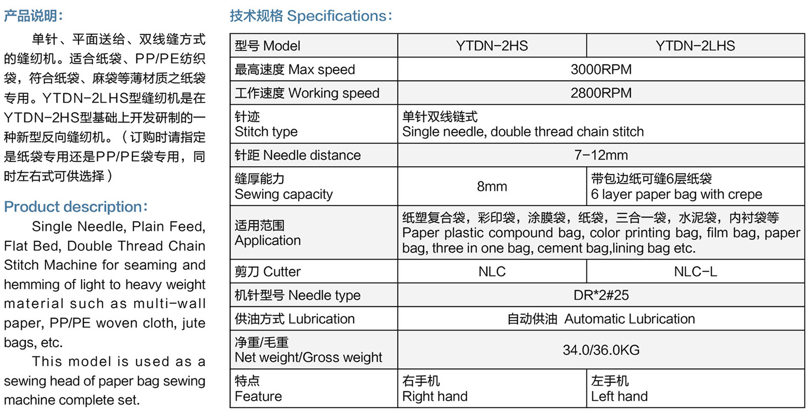 YTDN-2HS/2LHS High-speed sewing machine